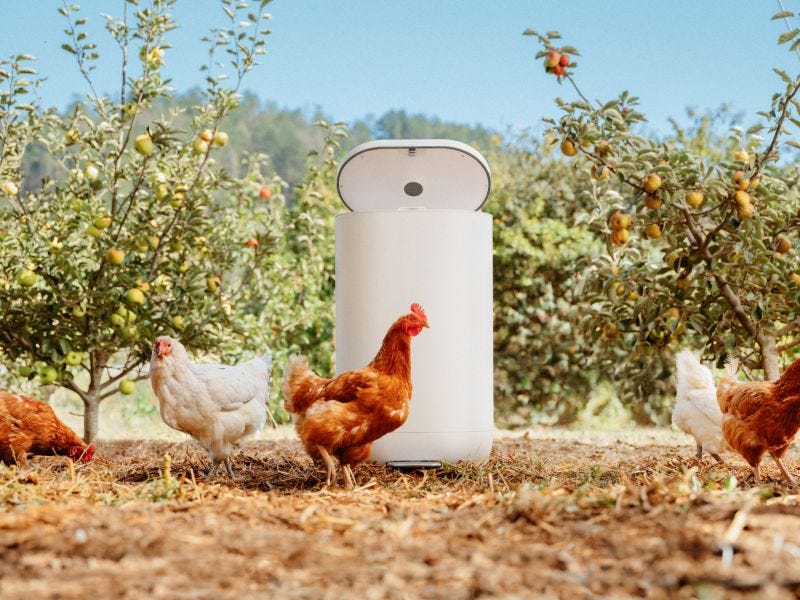 Inside the bin, metal paddles slowly churn the uneaten or inedible food. Charcoal cartridges prevent smells and fruit flies, and the food itself is heated to be turned into âFood Groundsâ - a dirt like mixture packed with nutrients, that is essentially foodâminus the water, bulk, odor, and ickâ. Nope, Food Grounds aren't compost - which relies on microbes and takes months not hours - and good thing too, otherwise it wouldnât be very effective as an animal feed ingredient⊠which is ultimately where they end up. Users package the Food Grounds into prepaid boxes, which will be picked up by the US postal service and shipped back to Mill. From there, Mill turns the Food Grounds into an ingredient in animal feed, to be used by chicken farmers. Once theyâve been fed to chickens, Mill has successfully closed the loop - food from farms, back to the farm again.Â